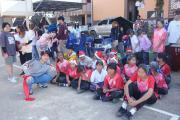นักศึกษาจากคณะสังคมวิทยาและมนุษยวิทยา มหาวิทยาลัยธรรมศาสตร์ ศูนย์รังสิต ที่ได้จัดกิจกรรมให้กับเด็กๆพร้อมทั้งปรับปรุงภูมิทันศ์