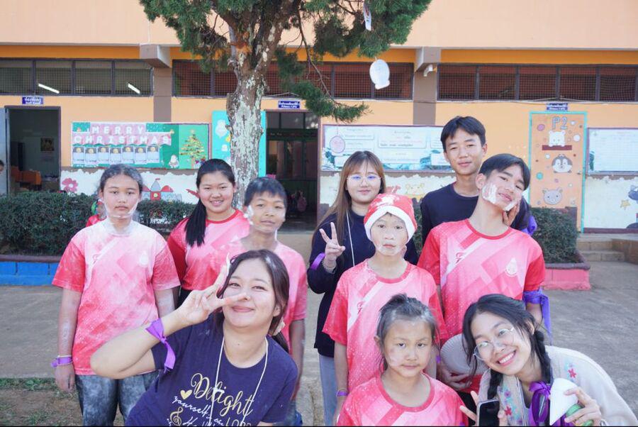 นักศึกษาจากคณะสังคมวิทยาและมนุษยวิทยา มหาวิทยาลัยธรรมศาสตร์ ศูนย์รังสิต ที่ได้จัดกิจกรรมให้กับเด็กๆพร้อมทั้งปรับปรุงภูมิทันศ์